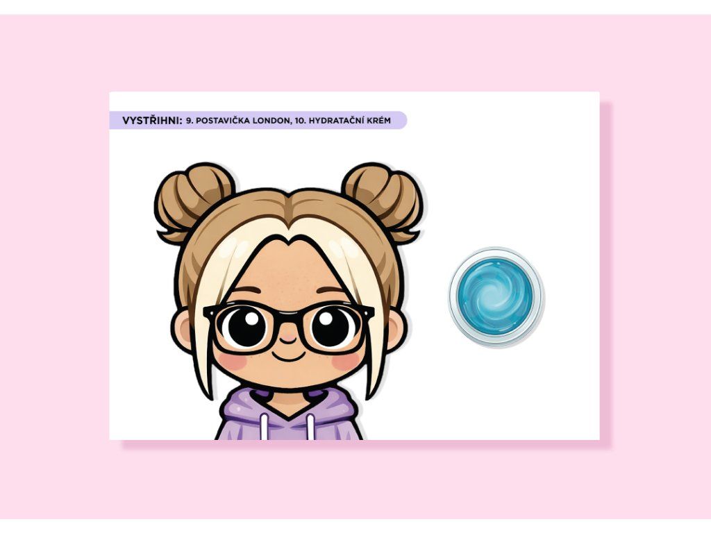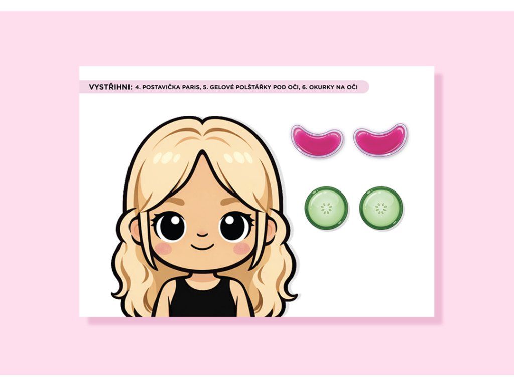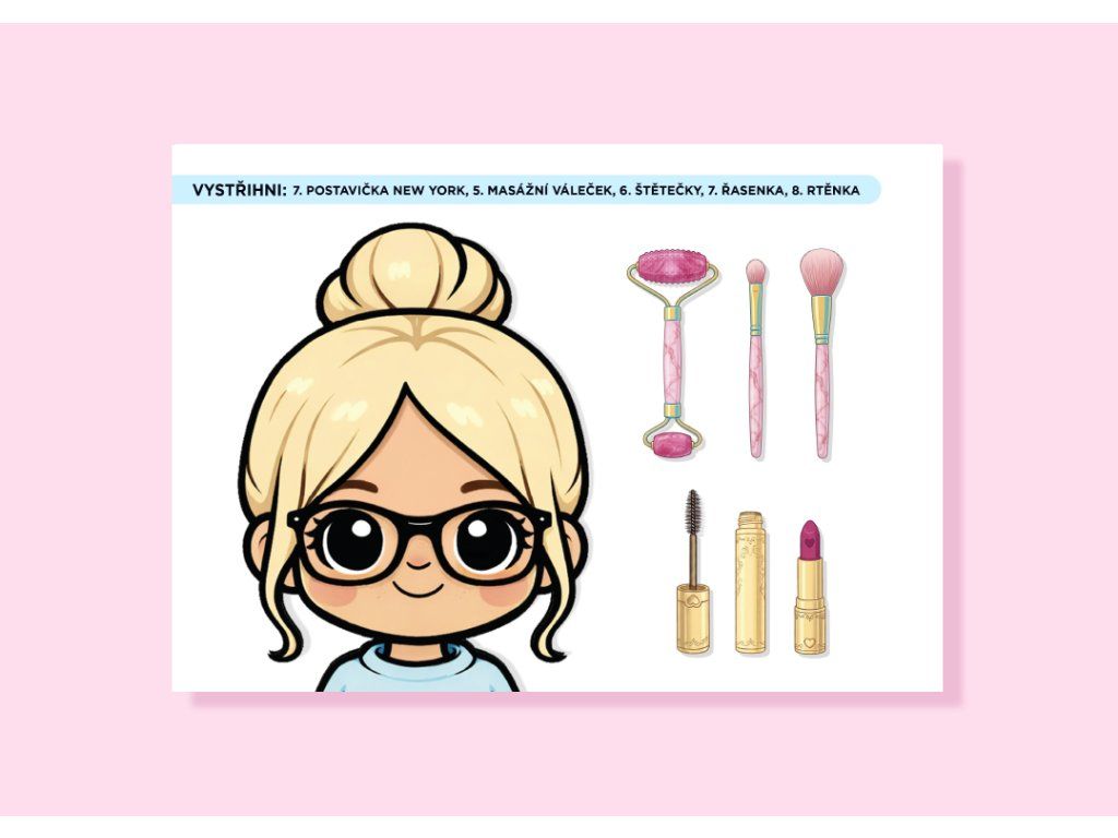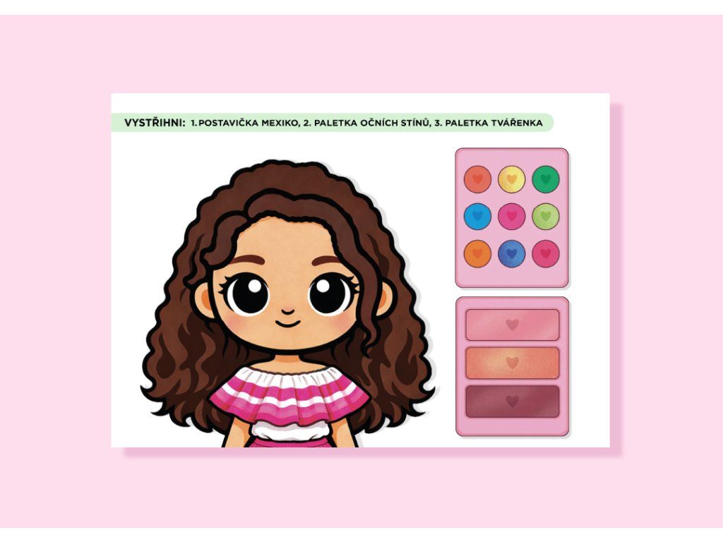 Děti si vytvoří své vlastní kosmetické studio, mohou zkoušet různé kombinace líčení a pečovat o své postavičky.